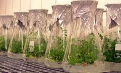 Verschulung der In-vitro-Robinien in der Baumschule des Instituts für Forstgenetik und Forstpflanzenzüchtung der BFH, Standort Waldsieversdorf (Juni 2005)